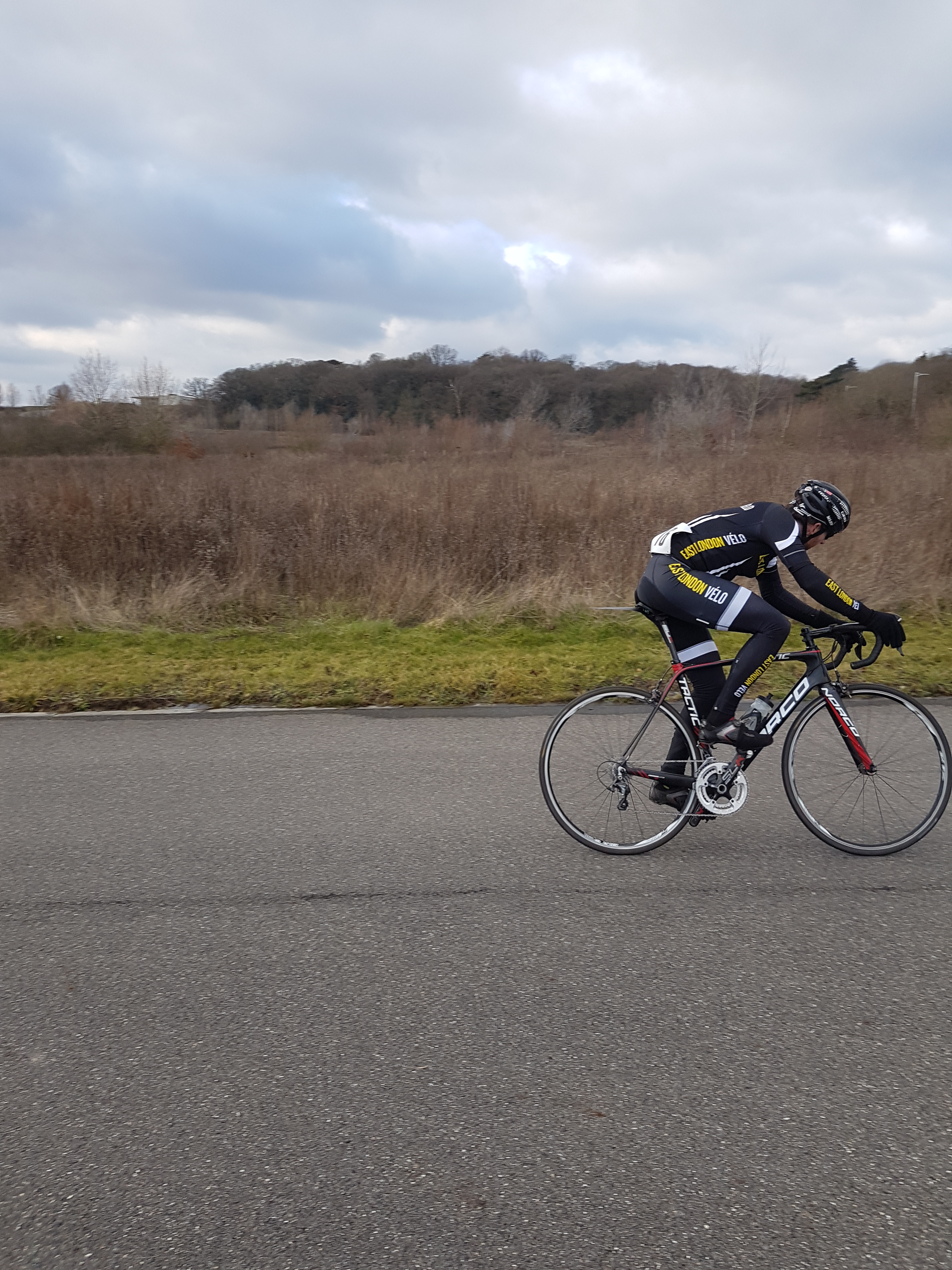The women’s race started out cosily enough, with Cindy Berry (Pedal Power Cycles Ipswich) and Rebecca Hair (Hilton and Impington Bicycle Club) taking turns, but before long, Rebecca was edging away and built a gap that proved insurmountable, and victory inevitable. With a small women’s field, it was first and second for Rebecca and Cindy, chapeau to both and thank you for coming. We really want to be able to offer full BC points in our women’s races in subsequent weeks so we have halved the entry fee to a tiny tenner and hope this will entice at least 10 riders to come and race with us. Pre-entries for next week are already looking rosier so come and join the fun – it’s a great circuit, a friendly crowd and the cheapest racing you’re likely to find.