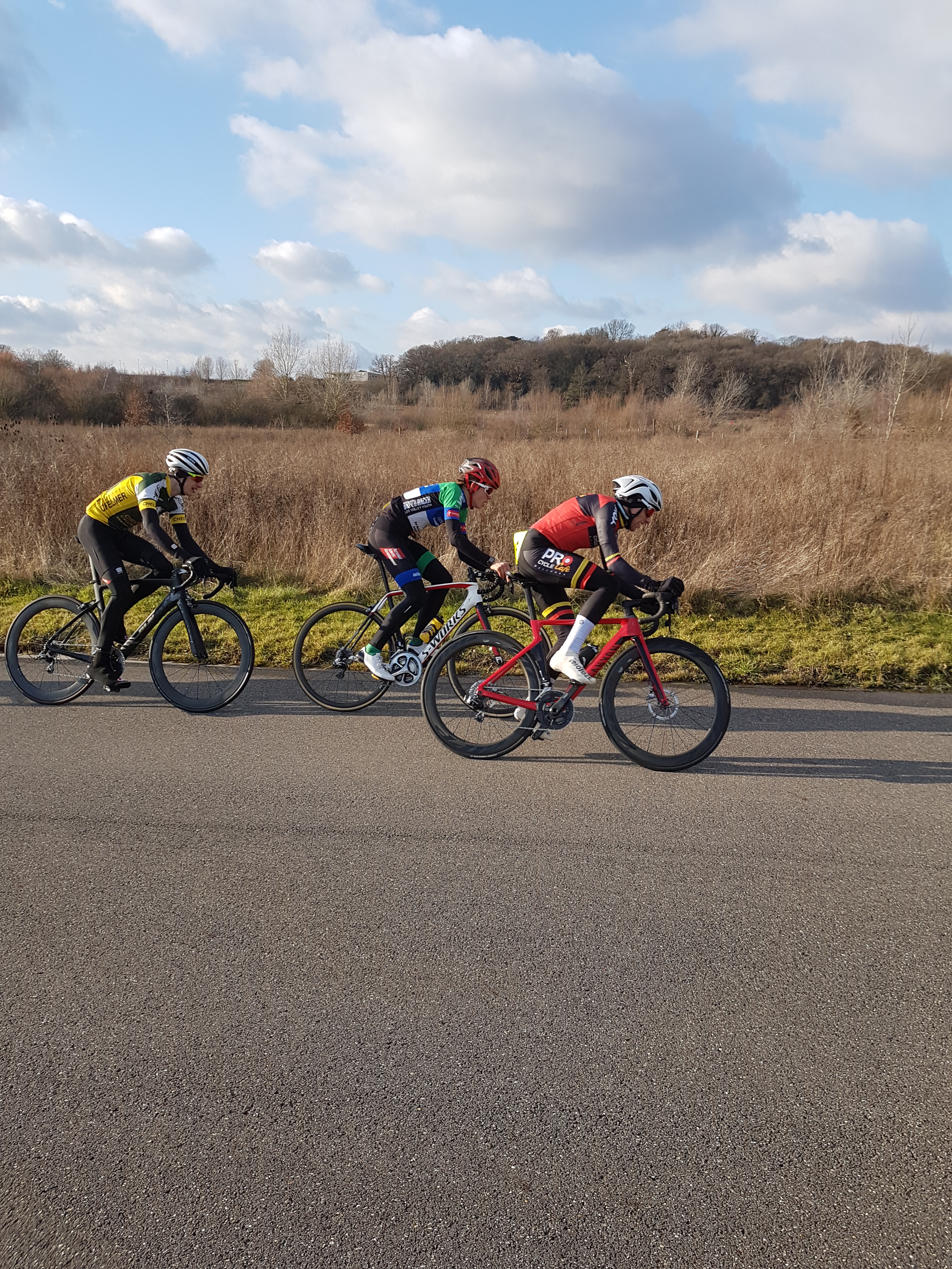 There’s no keeping the men’s 234 riders away as 25 took to the start line, with many familiar faces looking to nudge their way up the Series leader board. As the race settled in, a few breaks were attempted but didn’t stick. A team effort from Lee Valley Youth CC saw Alexander Herd and Samuel Asker break free of the bunch, only to be brought back after a few laps. Undeterred, Alexander went again, this time with Colin Peck (Chelmer CC) for company, and Thomas Willan (PCH Race Team), before a mechanical forced Tommy to withdraw.