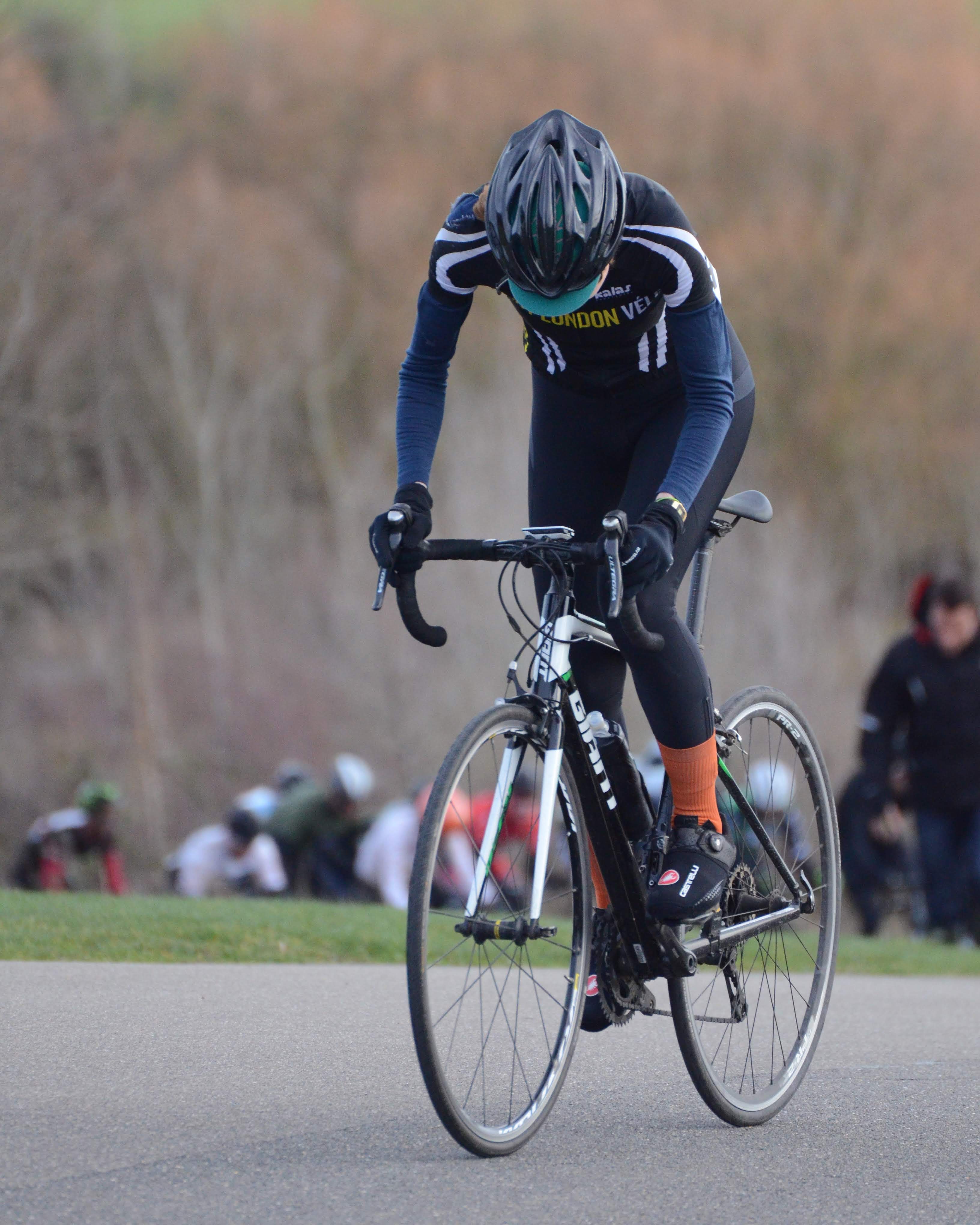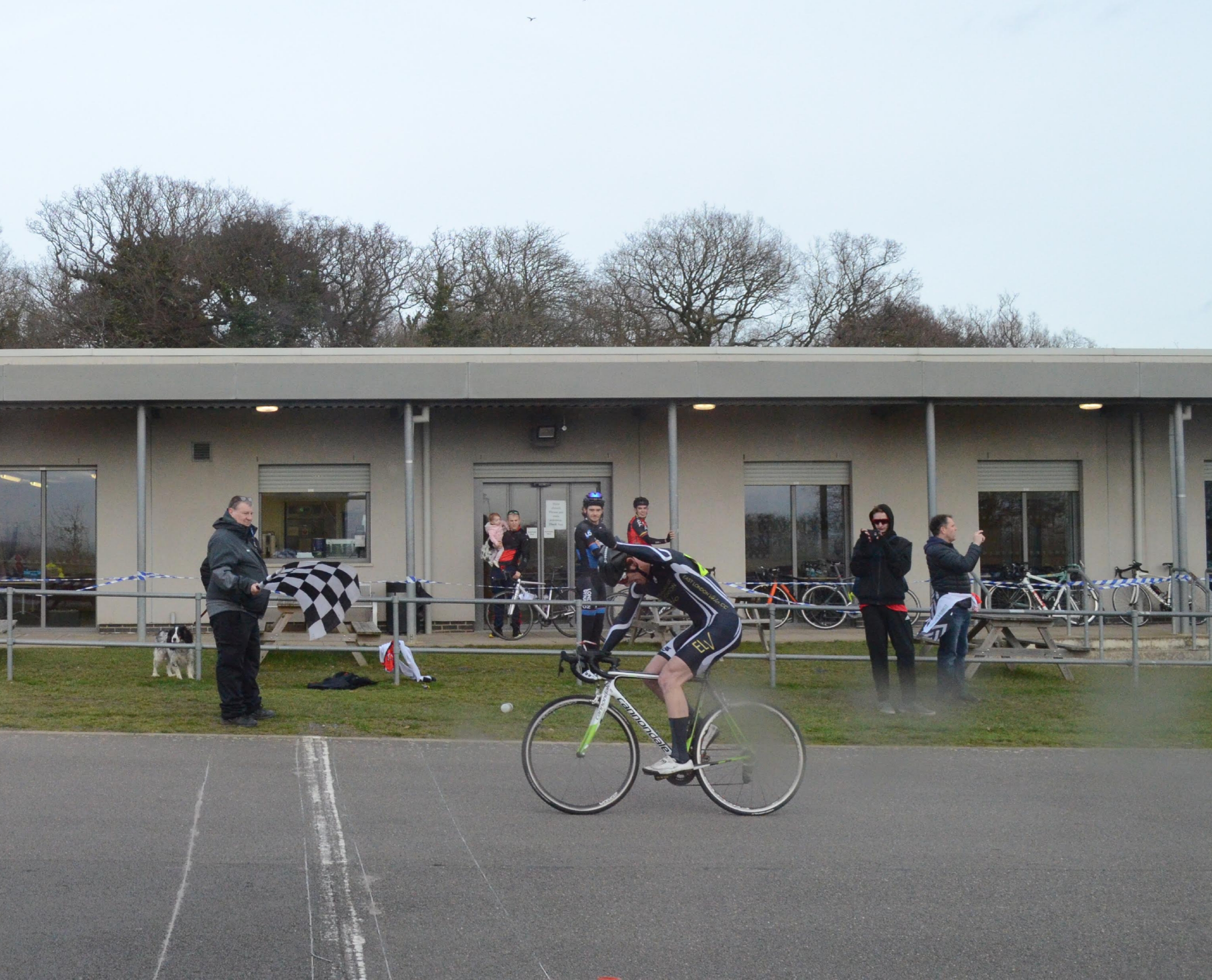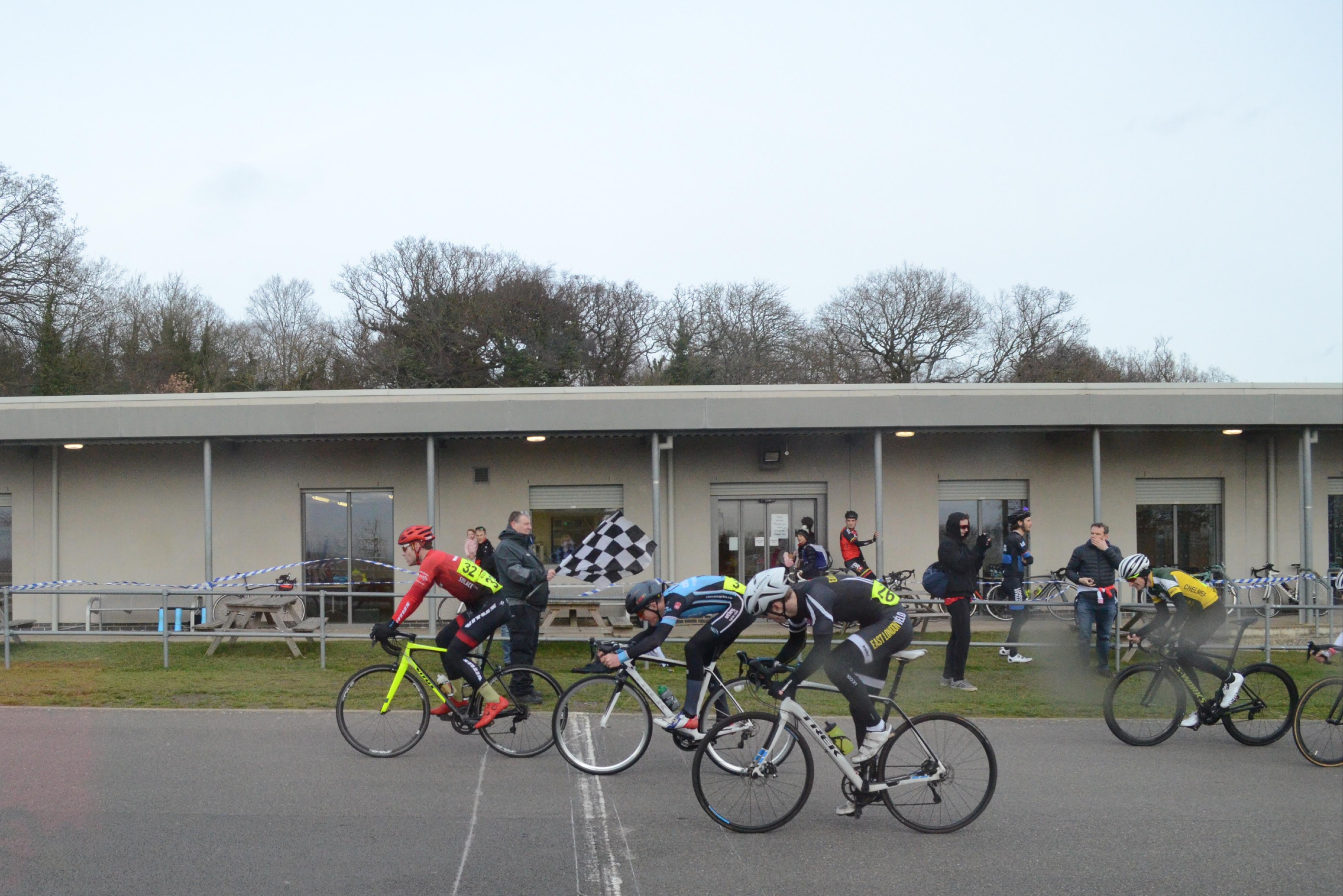 The women’s race got off to a strong start – mindful they were heading off into a gale, no one wanted to be left behind. But the Hell of the Hoggenburg Headwind (let’s not make that a thing) proved attritional and by lap four, the bunch had shrunk to five. Save for one mid-way attack that was soon brought back, the five stuck together for the duration of the race. For the second time in as many races, Amelia Harper took the win and pocketed her third cat license. Maddie Heywood (Lea Valley CC) took the second step and Elizabeth Danckert (Army Cycling Union) the third. Carolyn Soubayroux (Lea Valley CC) and Ellen Inglis (Team JRC) finished with the bunch in fourth and fifth place.