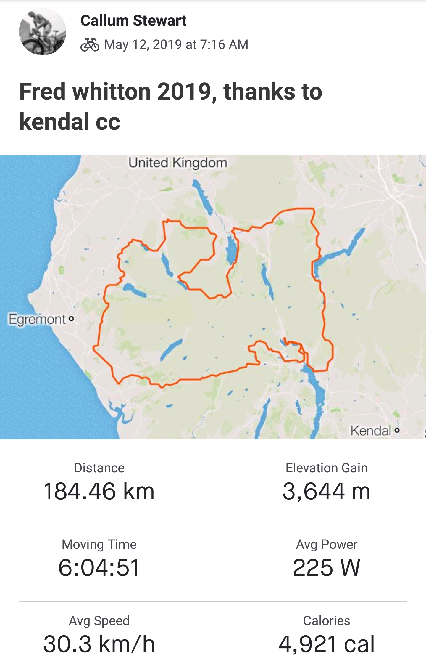 Two ELV braved the Fred Whitton not-a-race on Sunday. Ollie Williams made an impressively strong debut, completing the 114 mile x 3,900m course in 7 hours 9 minutes and placing 154th out of 2204 riders, well inside the top 10% of finishers.