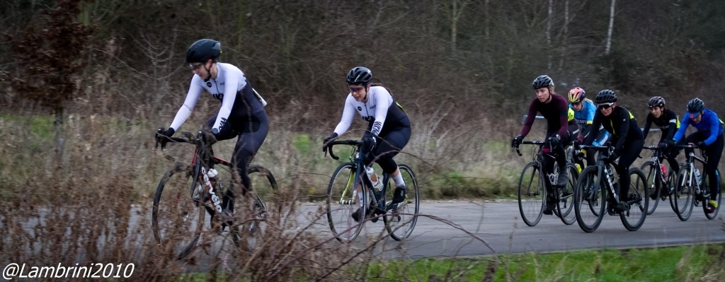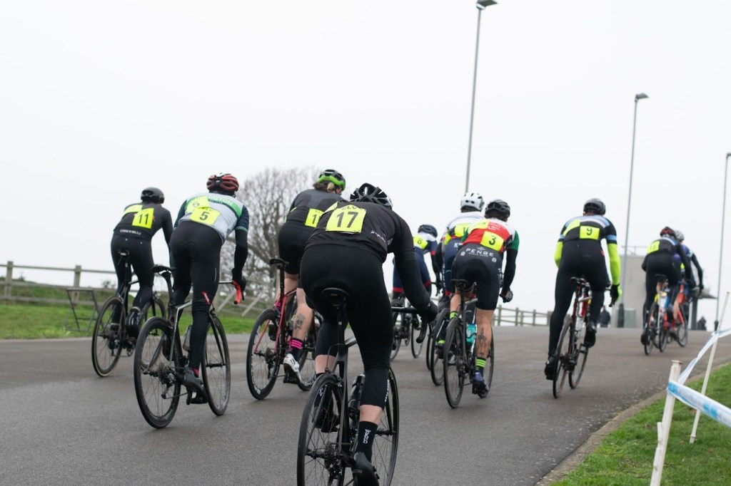 Exciting racing from a strong women’s field! High pace caused an early break to form at the top of the Hog. Five riders broke clear and worked well together for the duration. Ellen Bennett and Ella Coleman (both Team Flamme Rouge p/b Grenade), Connie Hayes (Awol), Greta Cowen (Les Filles RT) and Alice Lethbrige (Weston Homes-Torelli-Assure) kept the pace high and rode well clear of the bunch.