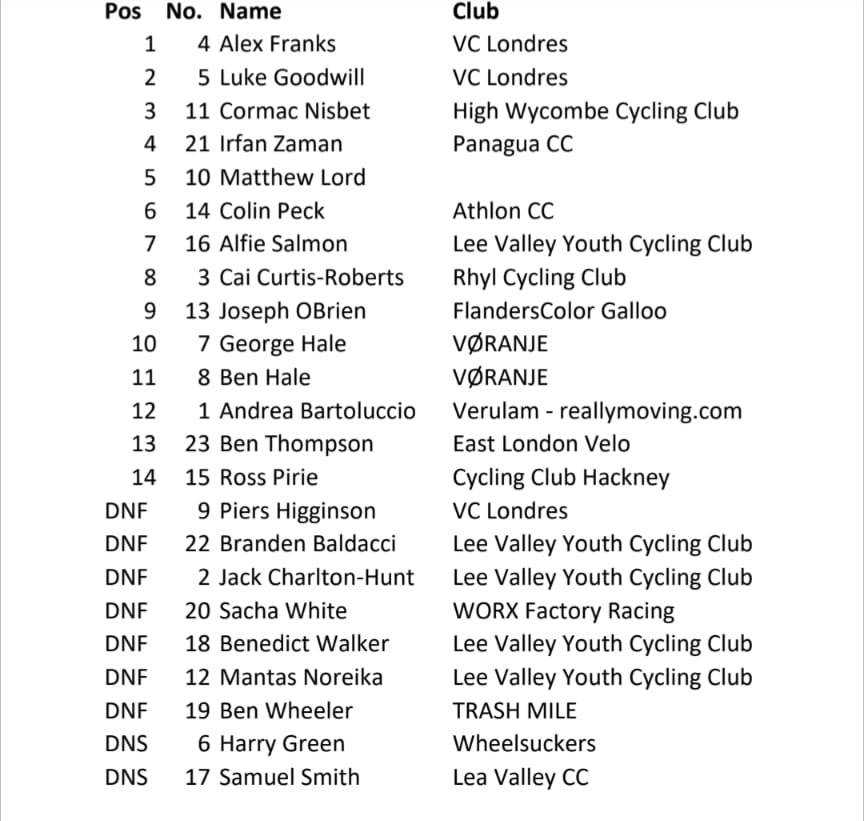 5th February 2022 – 1pm E123 Handicap – 2.15pm 4th cats only – Enter here: https://www.britishcycling.org.uk/events/details/255157/East-London-Velo-Winter-Series-3